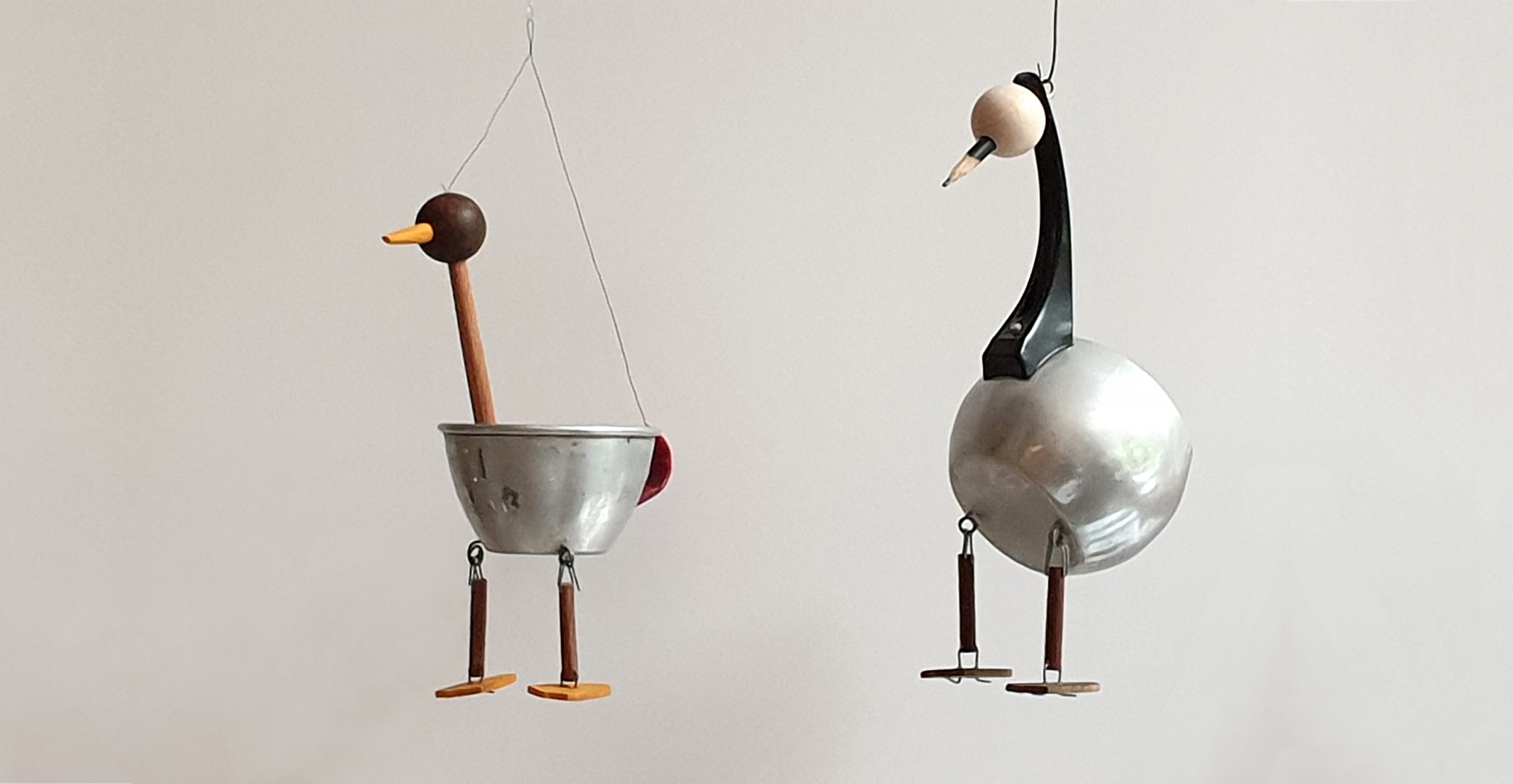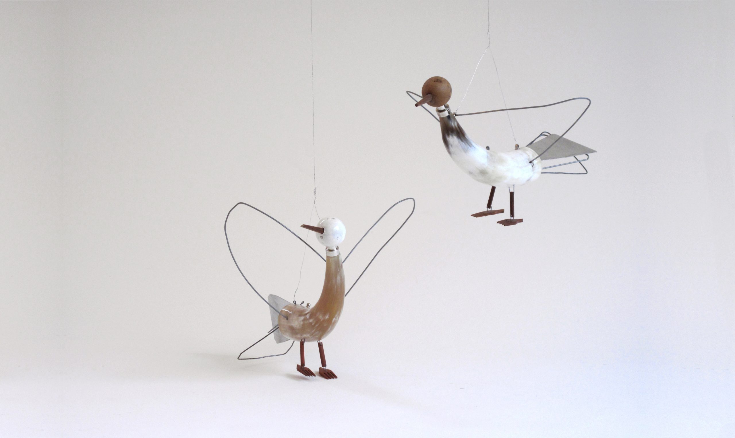 OISEAUX |Objets, bois, acrylique, fil de fer | 46 x 18 x 17,5 cm et 46 x 14 x 10 cm | 2012